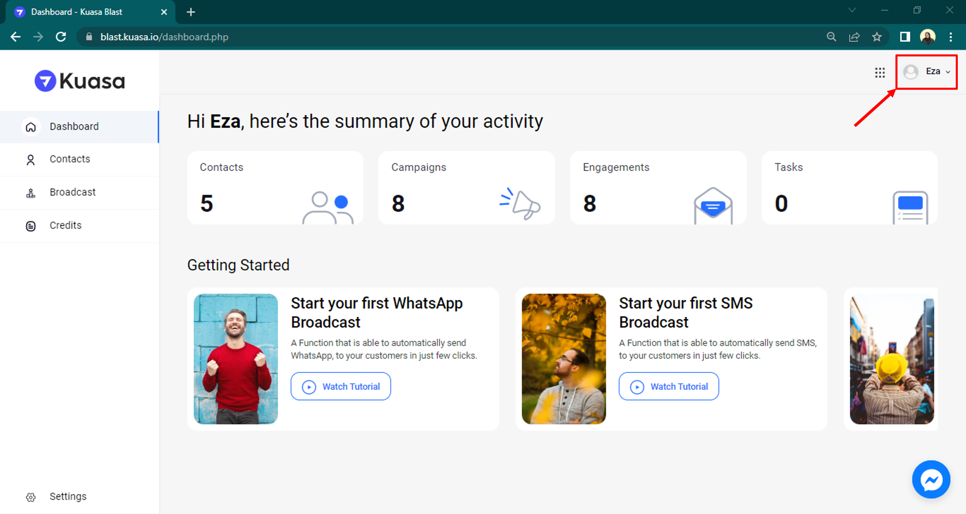 1. Log in to your account via <https://blast.kuasa.io/>.