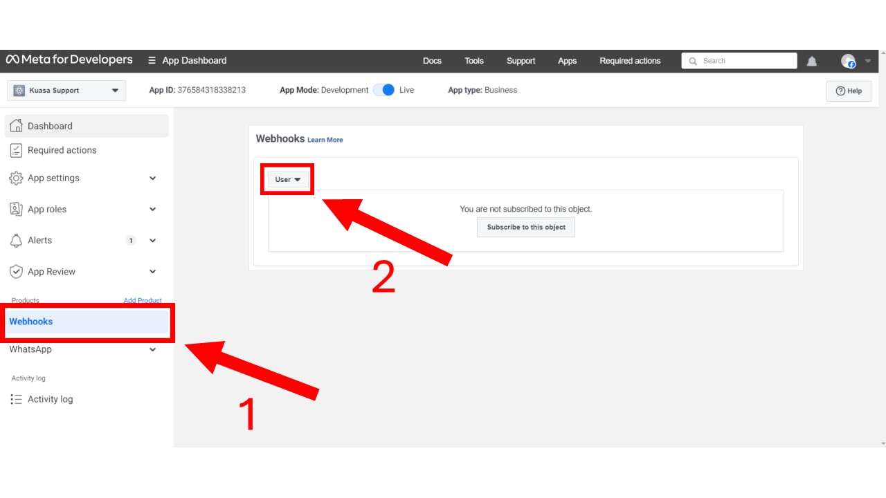 7. Click **Webhooks**, then click **User**.