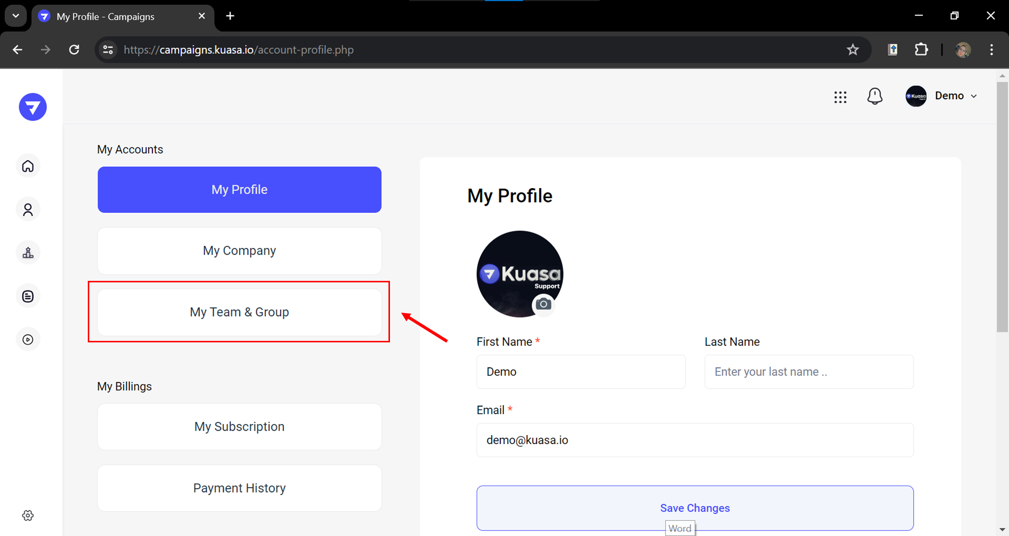 1. Login to your account via <https://campaigns.kuasa.io/>.