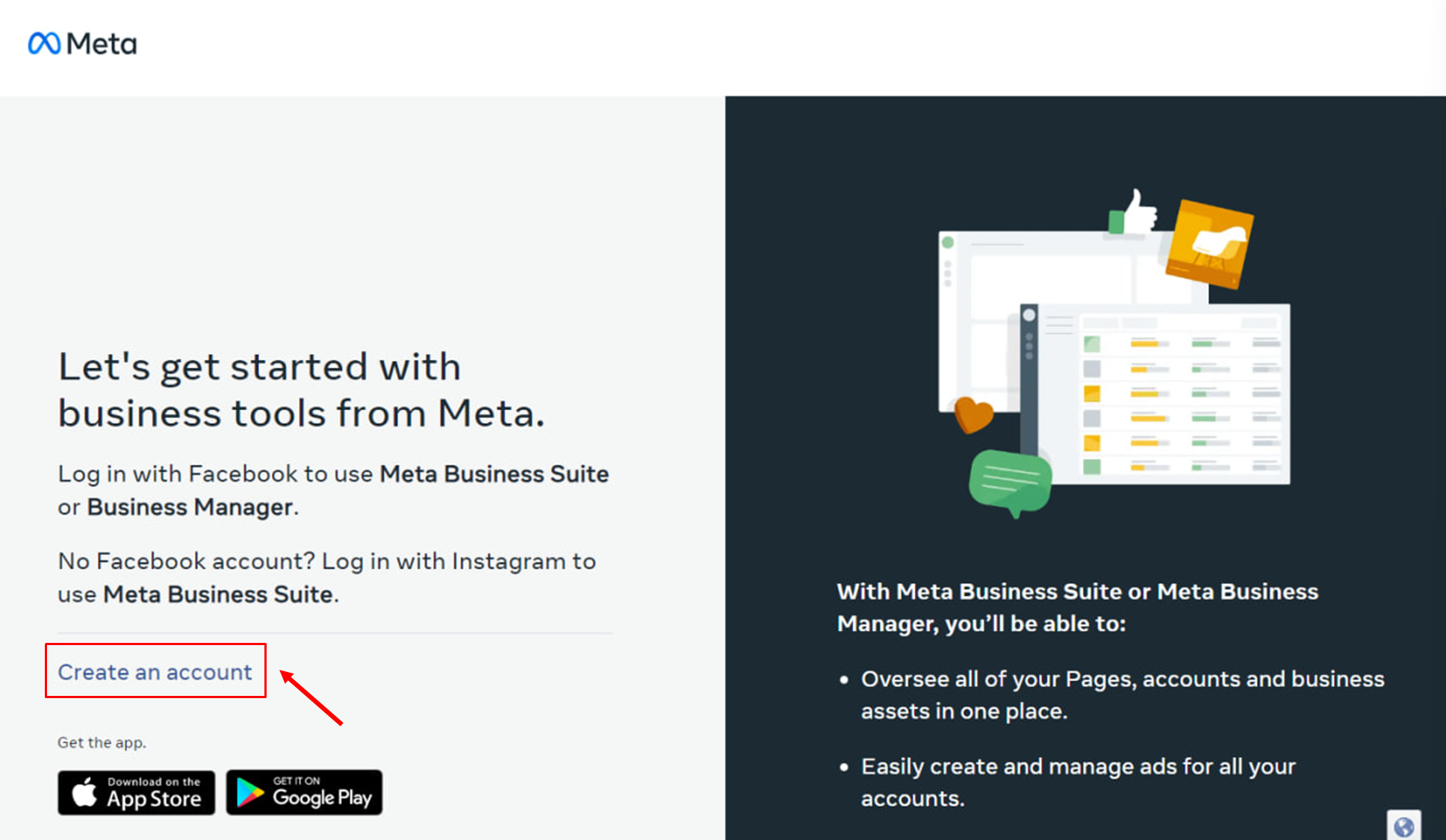 3. To connect, you need to create a **Meta Business Account**.
