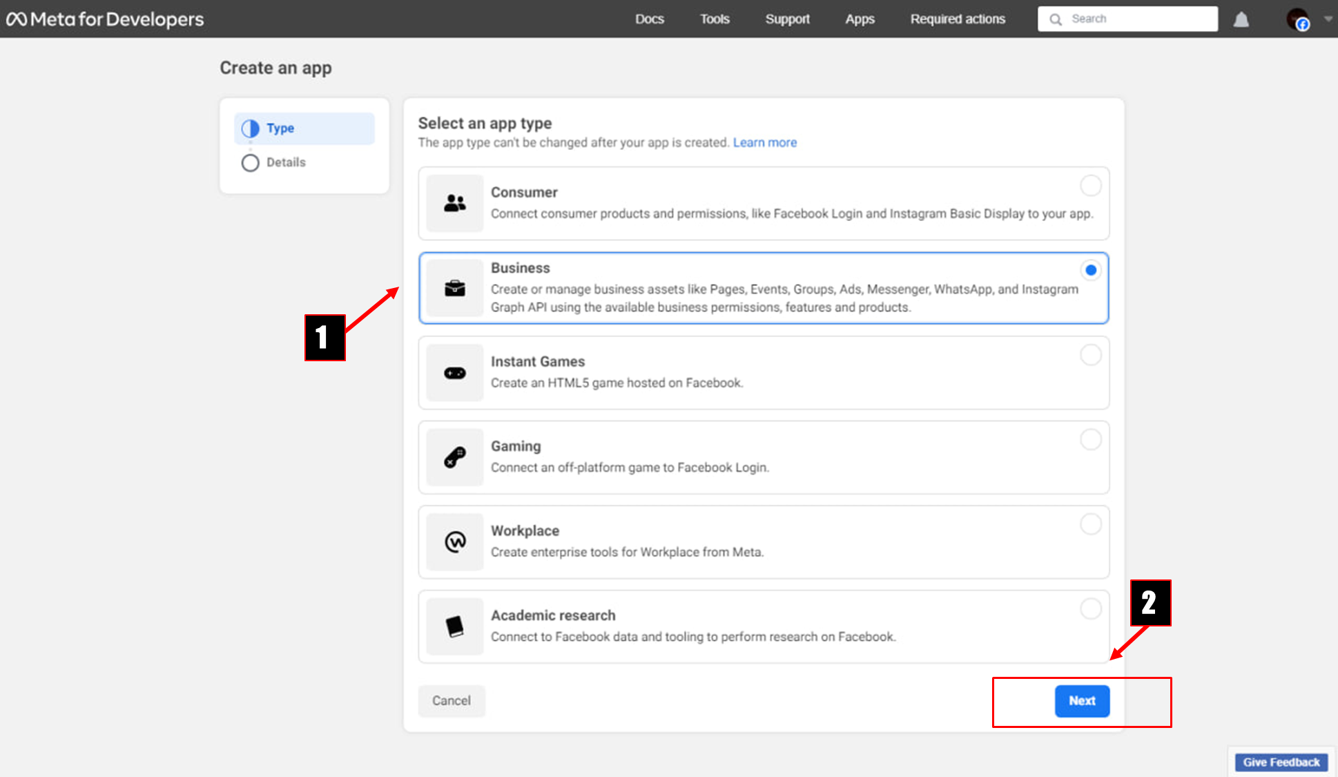 **Business App** - If you don't have one, you can learn to create a business app by following the steps below.