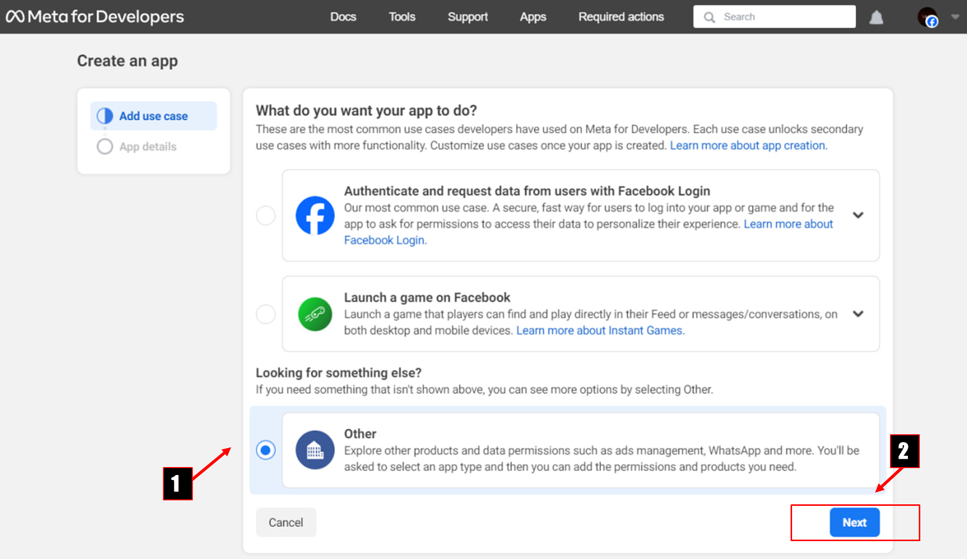 2. In the Add use case section, click the **Create app** button.