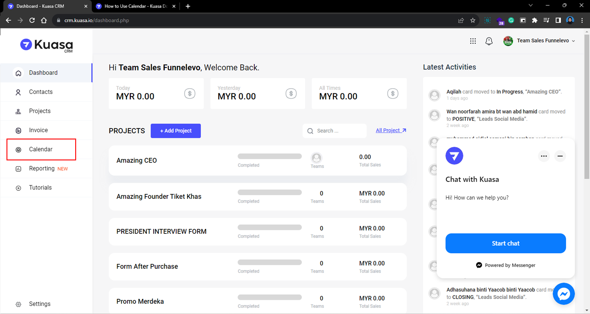 1. Login to your account via <https://crm-pipeline.kuasa.io/>.