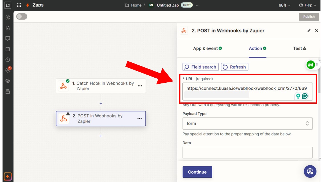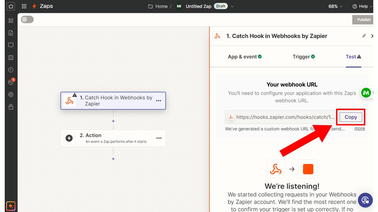 13. Copy the URL and paste it into the form settings under webhook.