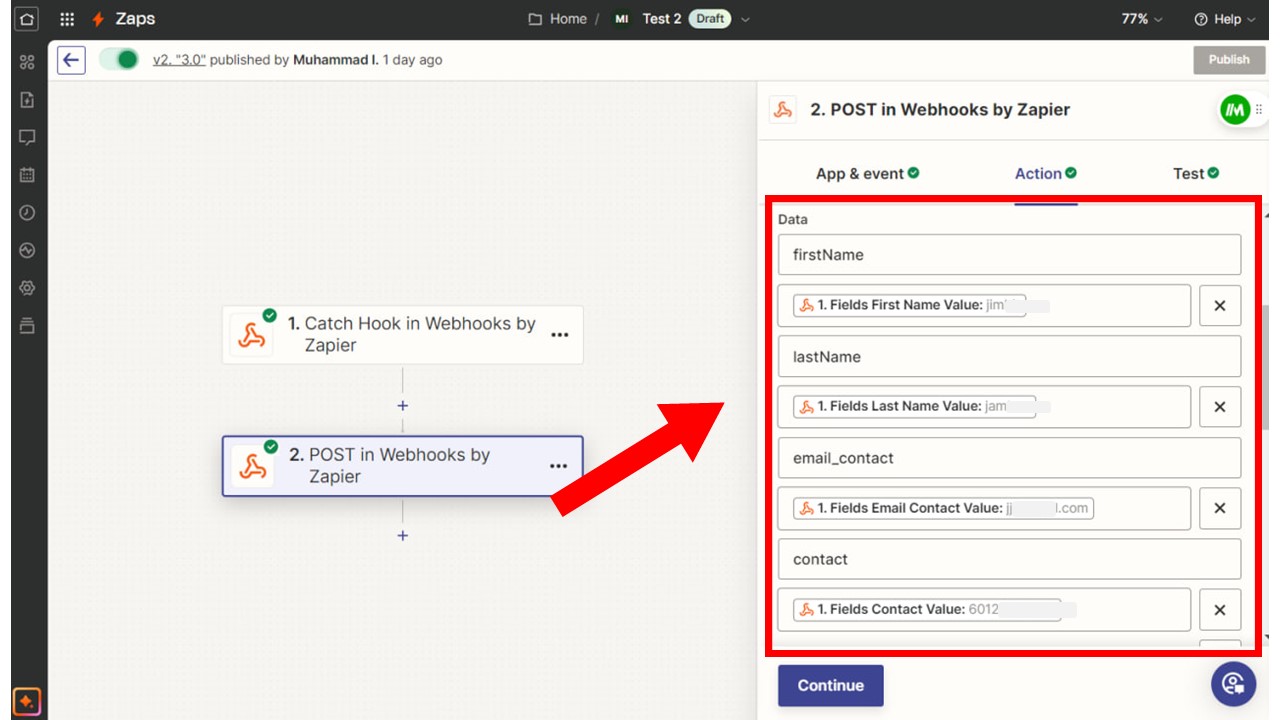16. Zapier will capture all the details submitted in the form.