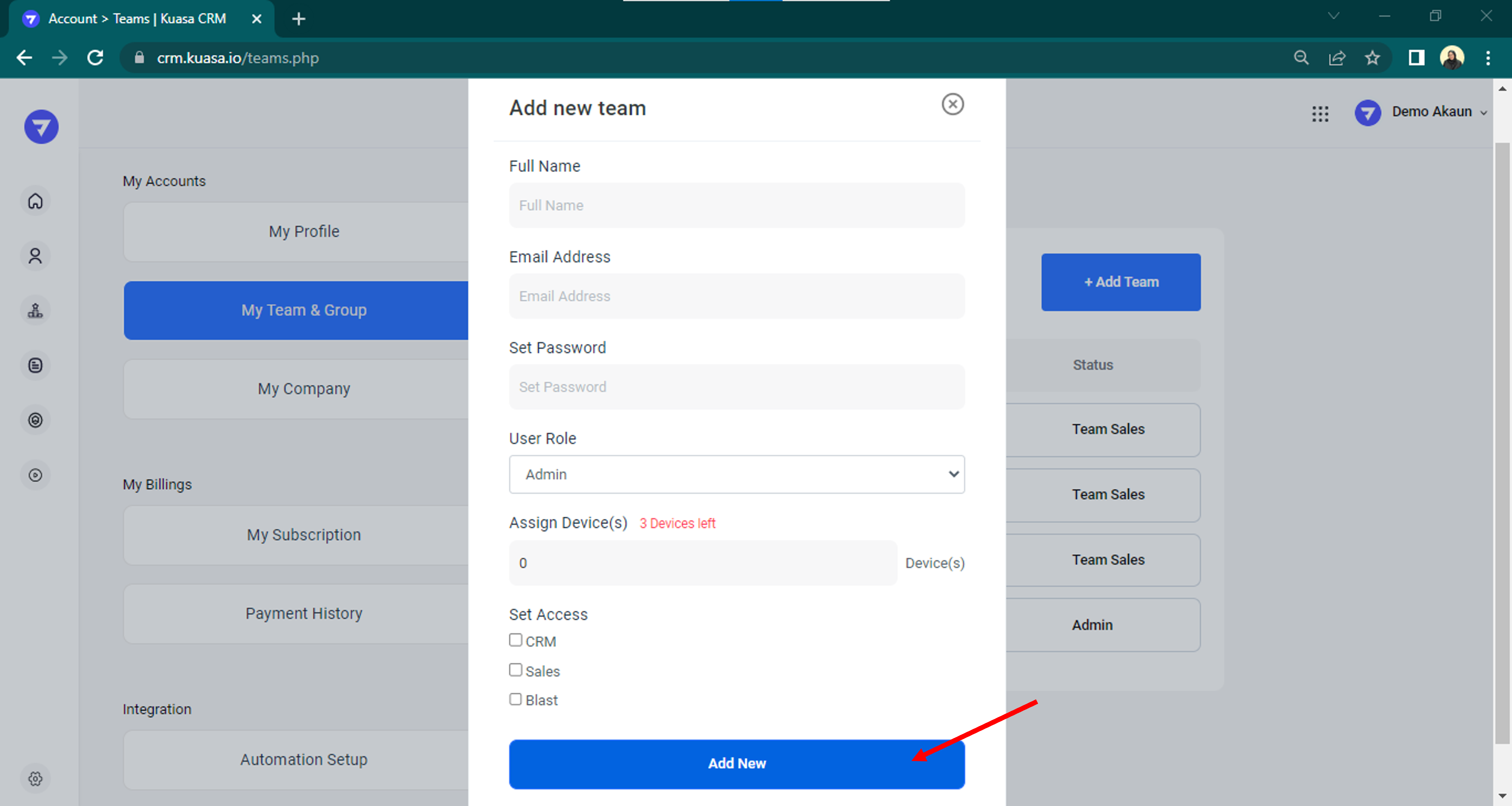 User Role -> Select team member position (Admin/Team Sales/etc.)&#x20;