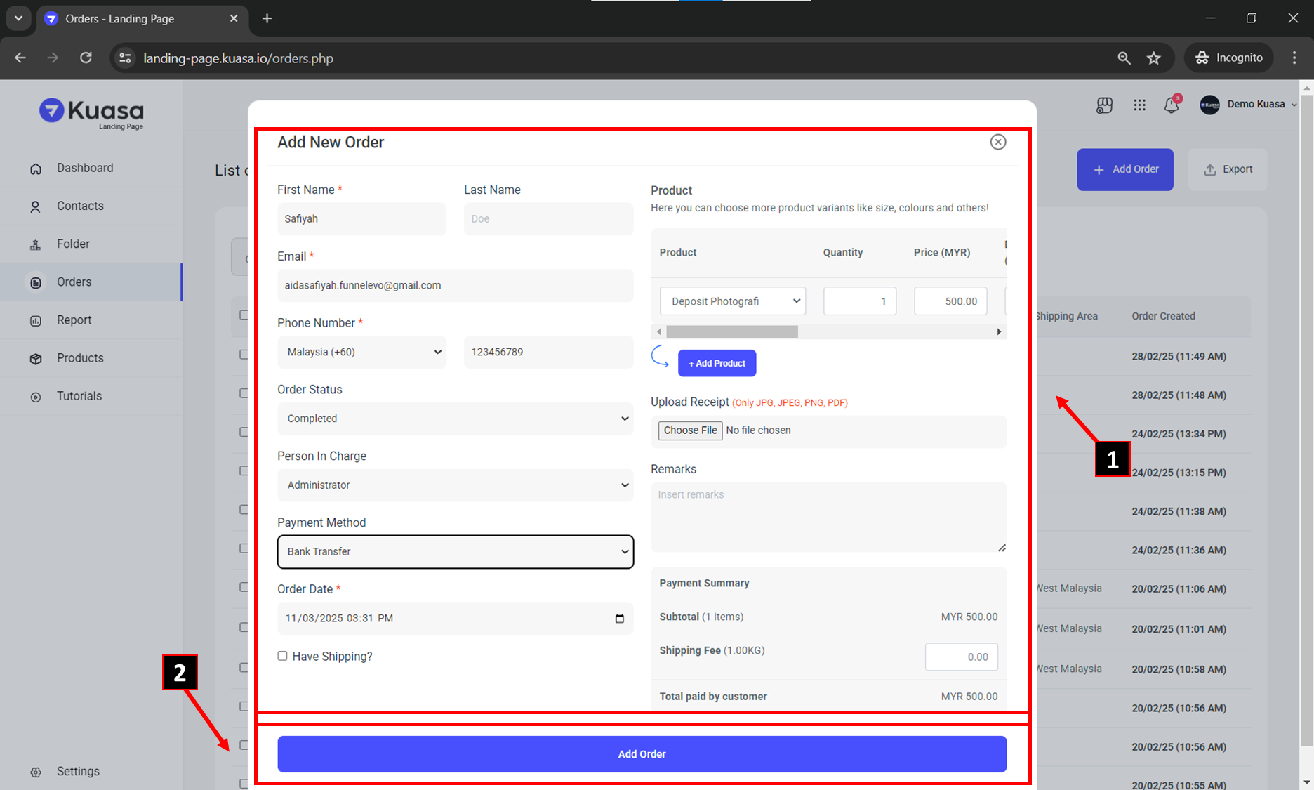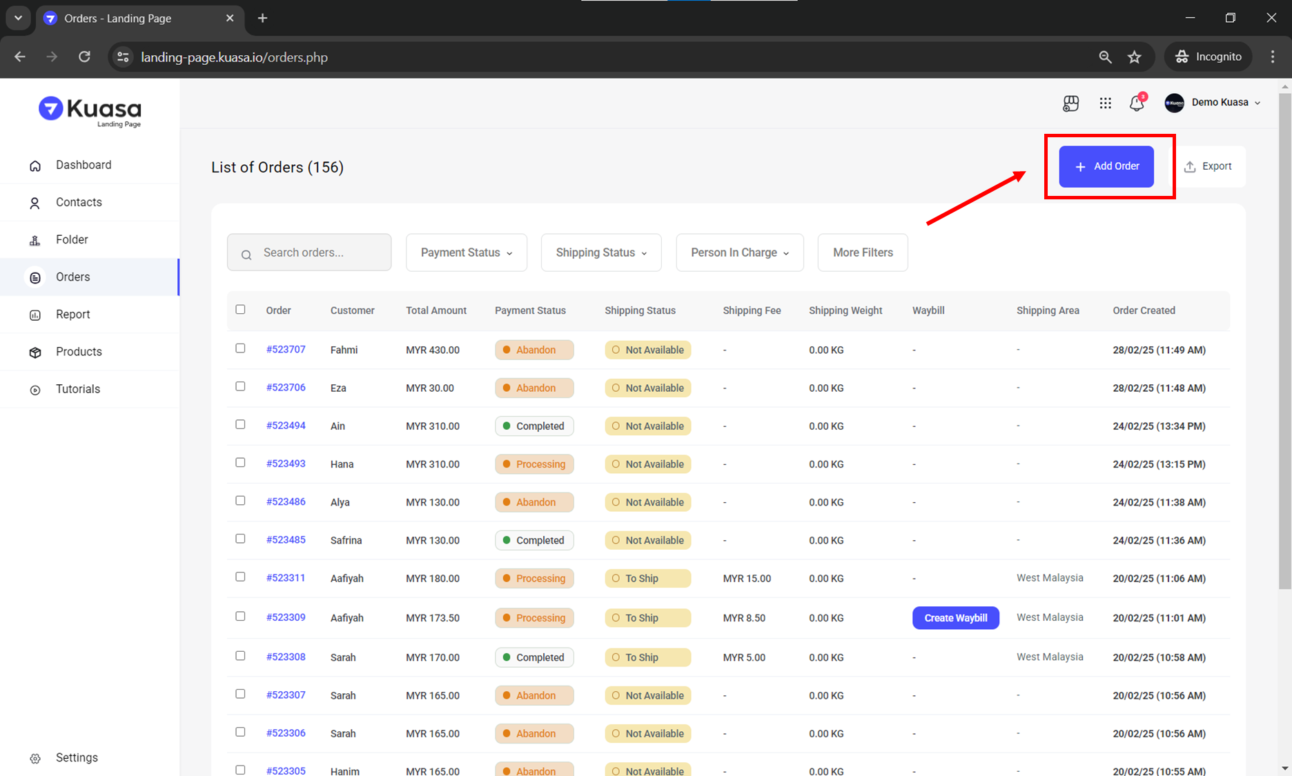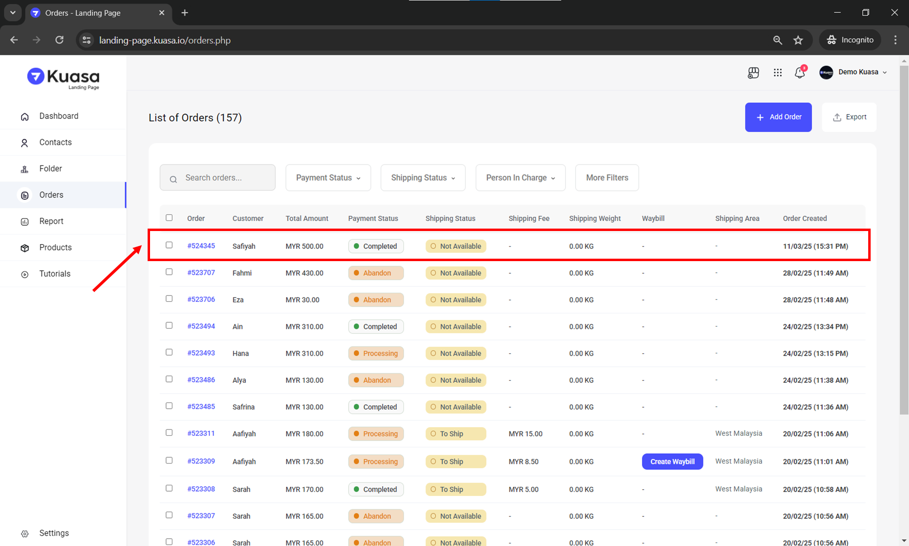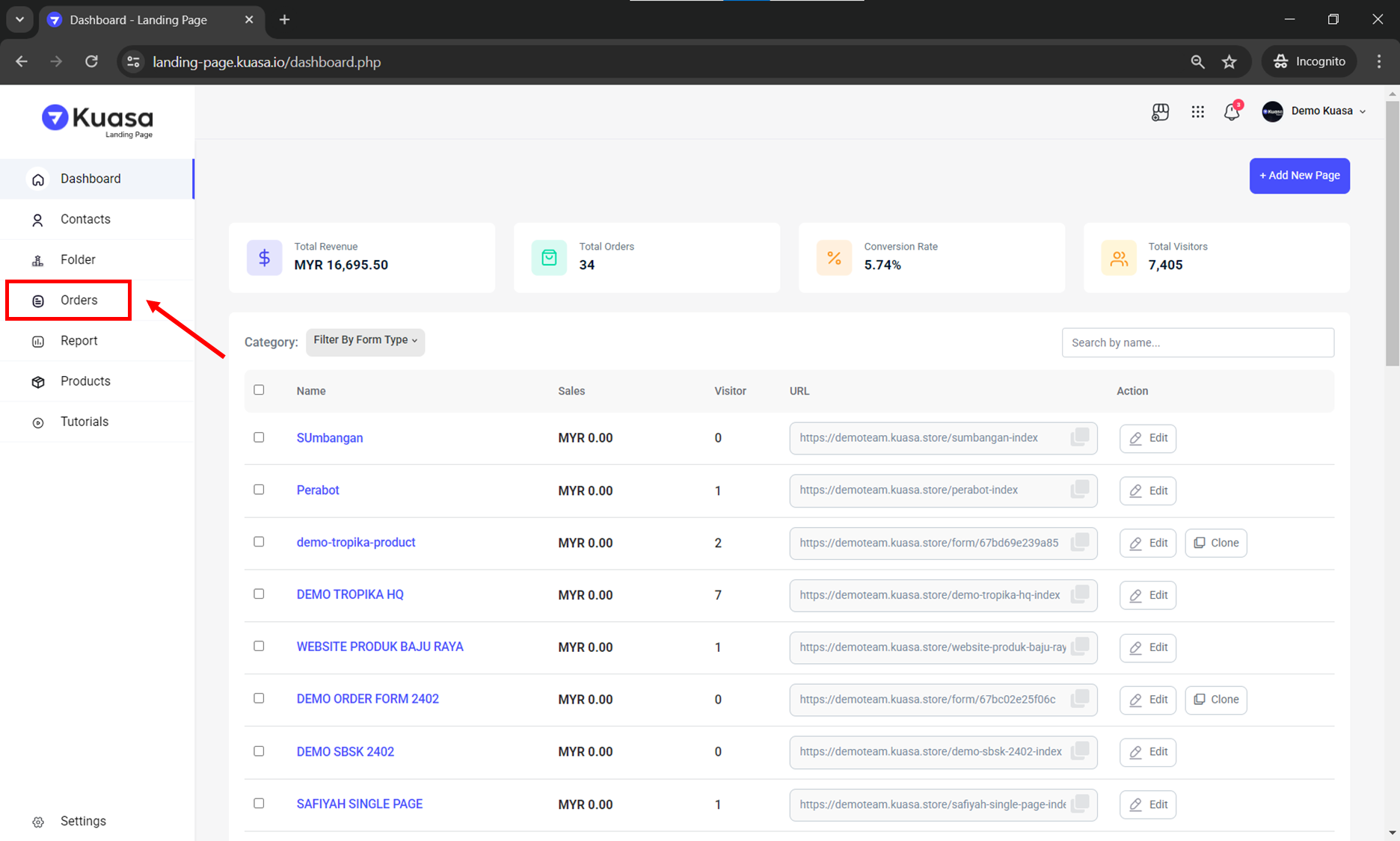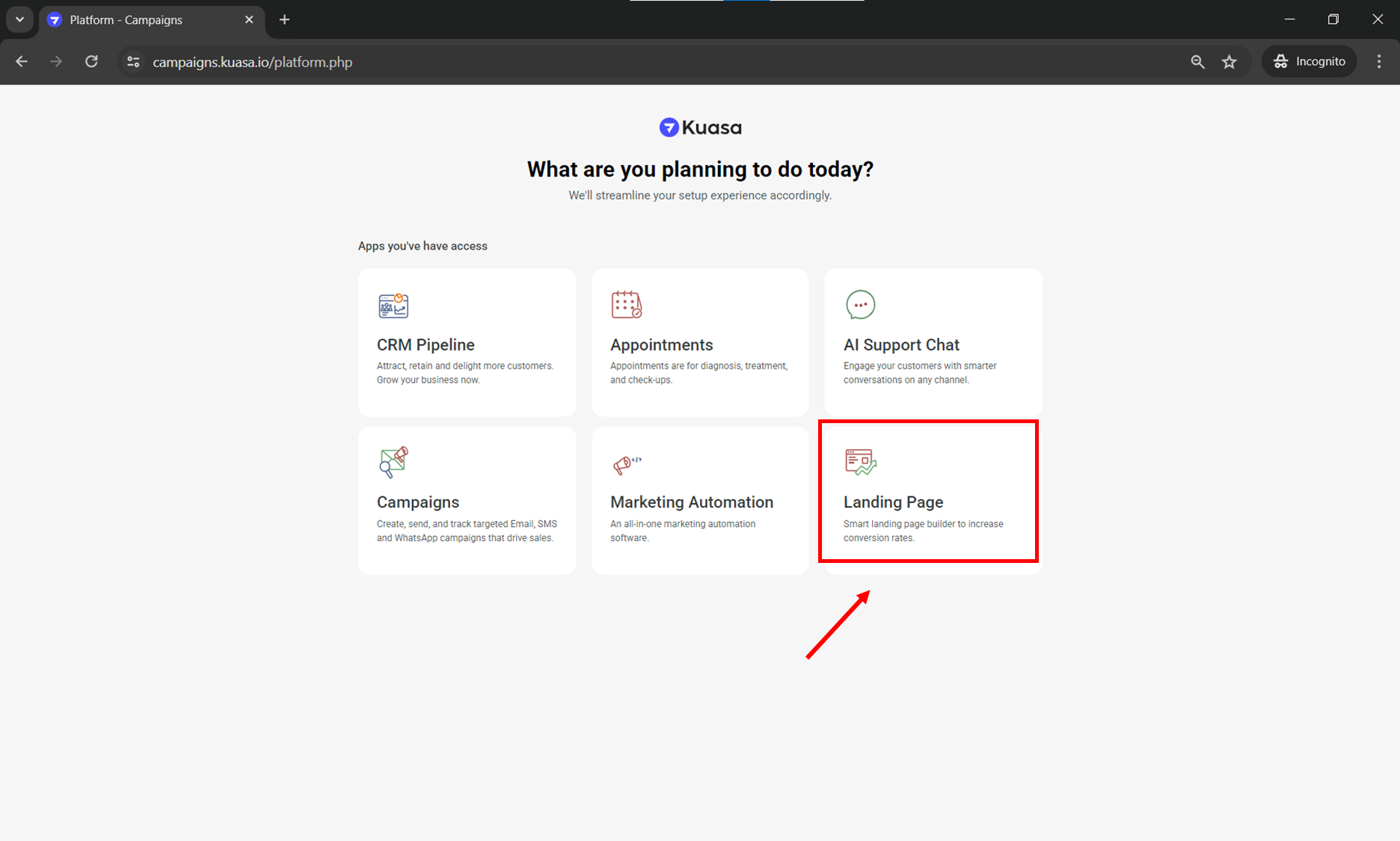 1. Log in to your Kuasa account via <https://landing-page.kuasa.io/>.