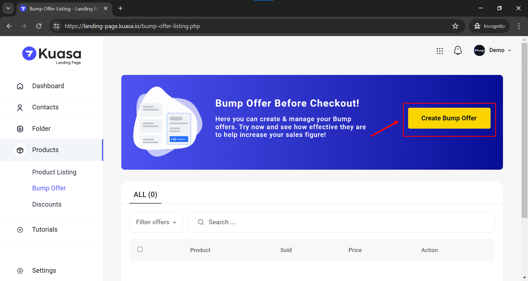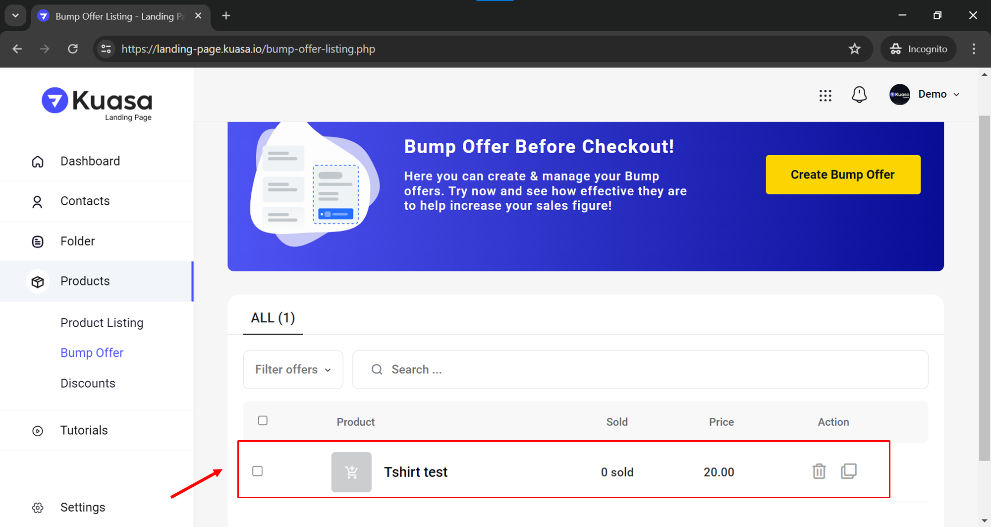 Click Bump Offer button.