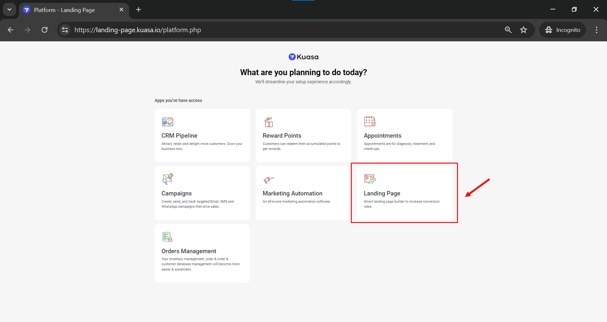 Click Landing Page.